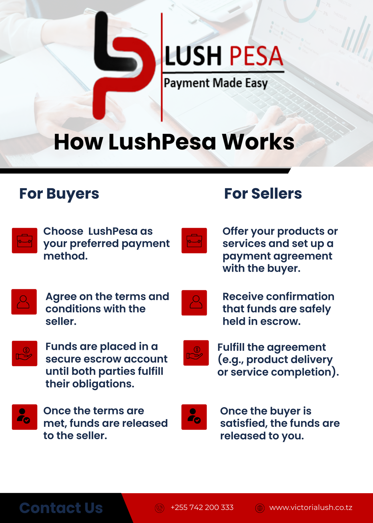 Our escrow services provide an added layer of protection for both buyers and sellers. With LushPesa acting as a neutral third party, we ensure that funds are only released when all terms and conditions of the agreement are met, ensuring fairness, reducing the risk of fraud, and promoting trust.